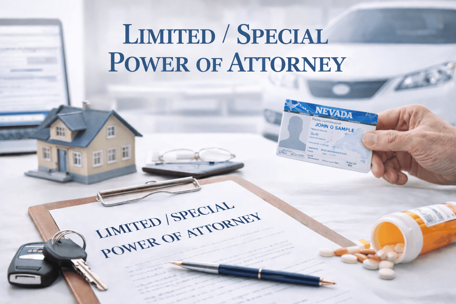 We prepare Durable Power of Attorney documents for Nevada residents and handle the notarization.